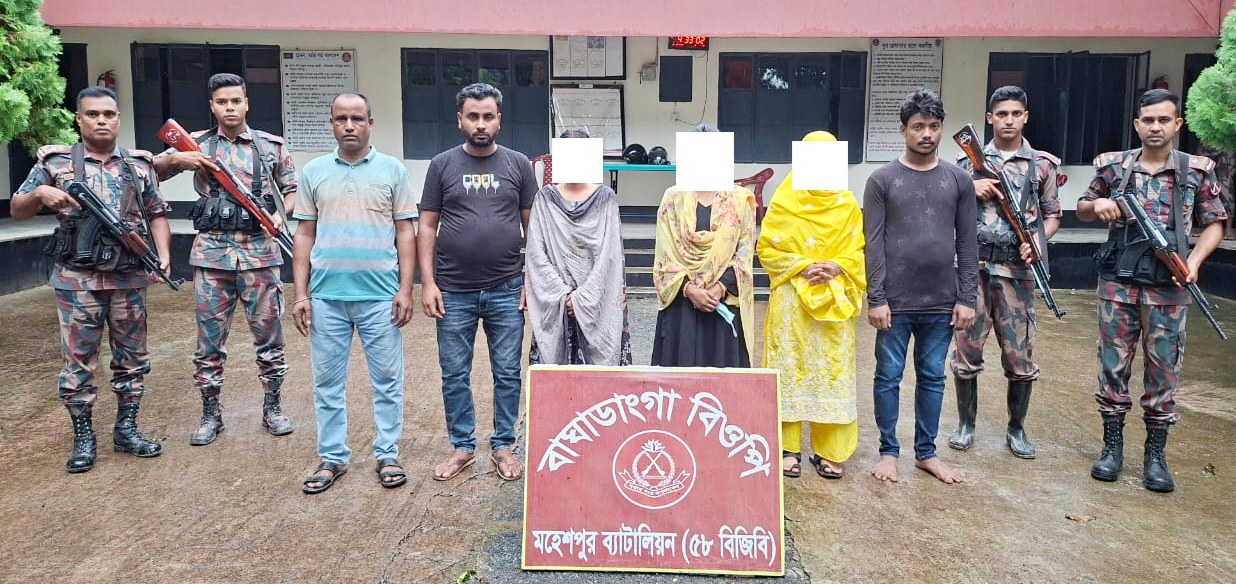 বিজিবি জানিয়েছে, শনিবার বেলা সাড়ে ১২টার দিকে বাঘাডাংগা বিওপির হাবিলদার সাইফুর রহমানের নেতৃত্বে সীমান্ত পিলার ৬০/৩৭-আর এলাকায় অভিযান চালায় বিজিবি। এসময় ৩ নারী ও এক শিশুসহ ৫ জনকে আটক করা হয়।