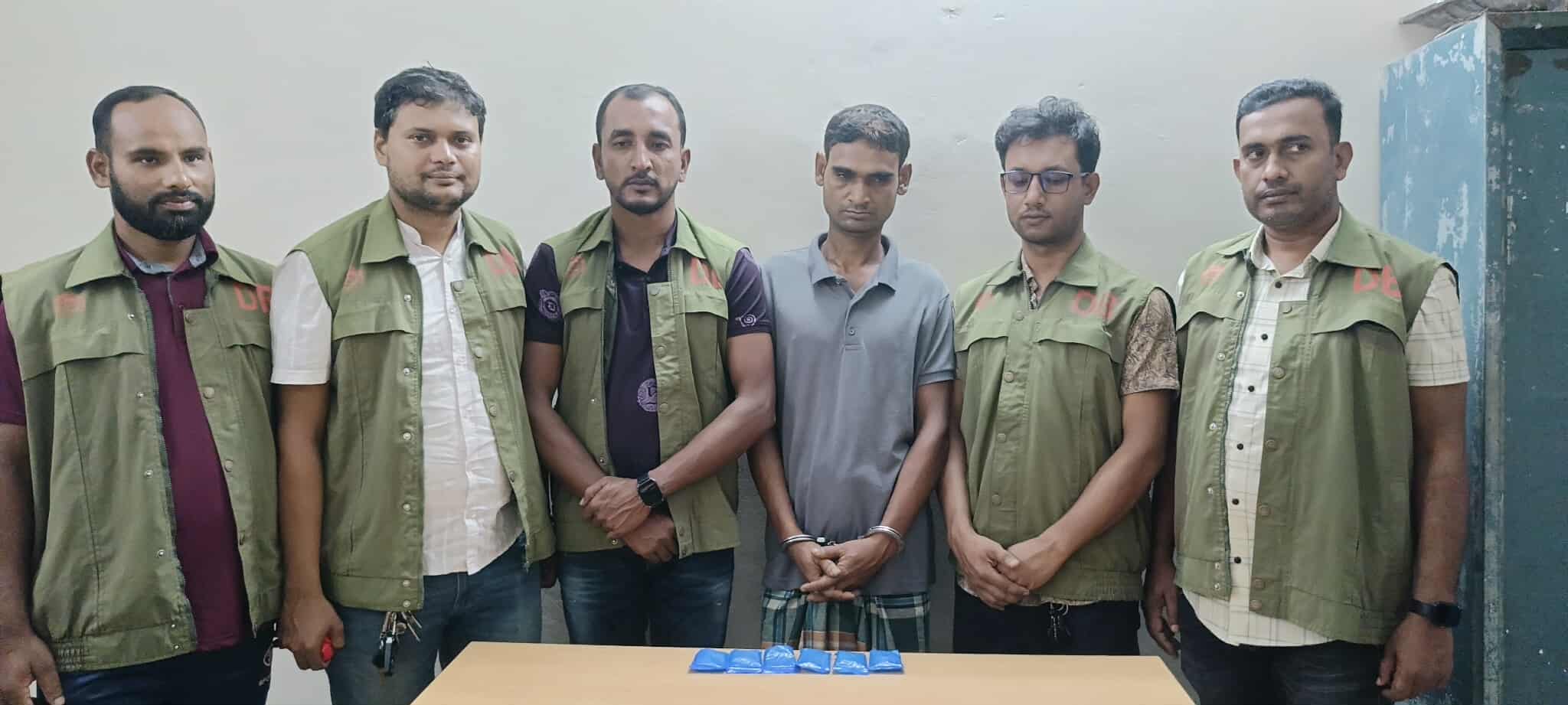 আজ ১১ অক্টোবর শনিবার ভোর ৫টার সময় সদর উপজেলার কেওড়াবুনিয়া ইউনিয়নের লতাবাড়িয়া গ্রাম থেকে ঐ মাদক কারবারিকে আটক করা হয়। আটক হওয়া মাদক কারবারির নাম জুয়েল মৃধা (৩৯)।সে বরগুনা সদর উপজেলার কেওড়াবুনিয়া ইউনিয়নের লতাবাড়ীয়া গ্রামের মৃত সুলতান মৃধার ছেলে। তার বিরুদ্ধে বরগুনা থানায় ৩ টি মাদক, নারী নির্যাতন সহ ৭ টি মামলা রয়েছে।