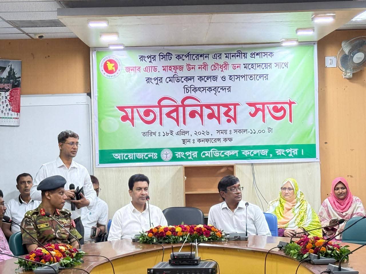 রংপুর মেডিকেল কলেজ হাসপাতালের অভ্যন্তরীণ পরিবেশ পরিচ্ছন্ন, সুন্দর ও রোগীবান্ধব করার লক্ষ্যে এক গুরুত্বপূর্ণ মতবিনিময় সভা অনুষ্ঠিত হয়েছে। সভায় রংপুর সিটি কর্পোরেশনের (রসিক) প্রশাসক এ্যাডভোকেট
