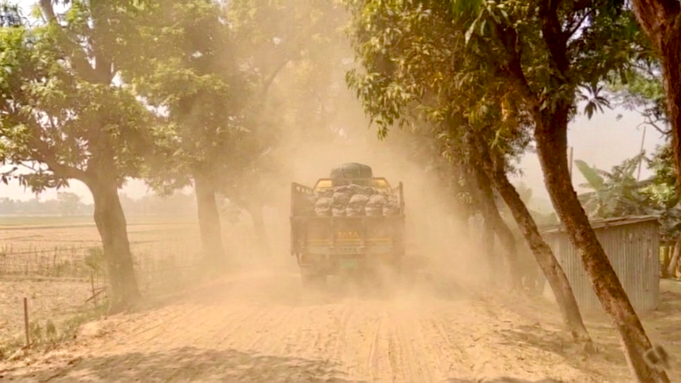 সুনামগঞ্জের মধ্যনগর উপজেলার মহিষখলা–বাঙ্গালভিটা সড়ক ধুলায় ধূসর হয়ে পড়েছে। বাগলী শুল্ক স্টেশন থেকে চুনাপাথর এবং চারাগাঁও শুল্ক স্টেশন থেকে কয়লাবোঝাই শত শত ট্রাক প্রতিদিন এই