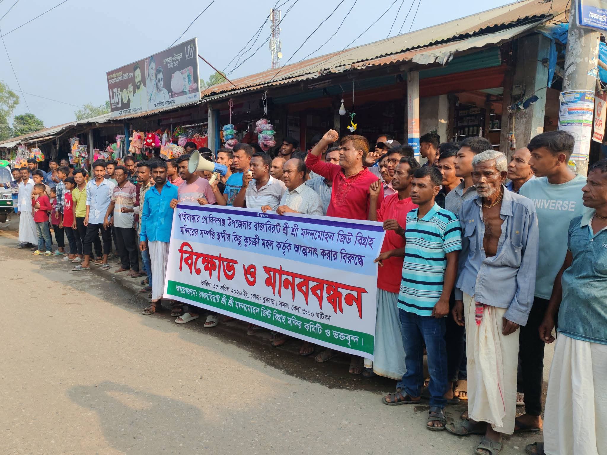 গাইবান্ধার গোবিন্দগঞ্জ উপজেলার ঐতিহ্যবাহী রাজাবিরাট এলাকায় শ্রী শ্রী মদন মোহন জিউ বিগ্রহ মন্দিরের সম্পত্তি স্থানীয় একটি কুচক্রী মহল কর্তৃক অবৈধ ভাবে আত্মসাৎ ও চাঁদাদাবির প্রতিবাদে